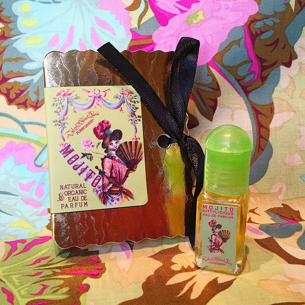 Mojito makes a sparkling gift, bottled in a convenient 5 roll-top bottle and tucked into a gold book box with a decorative label and bow. 8 and 15 ml bottles come in a velvet pouch.