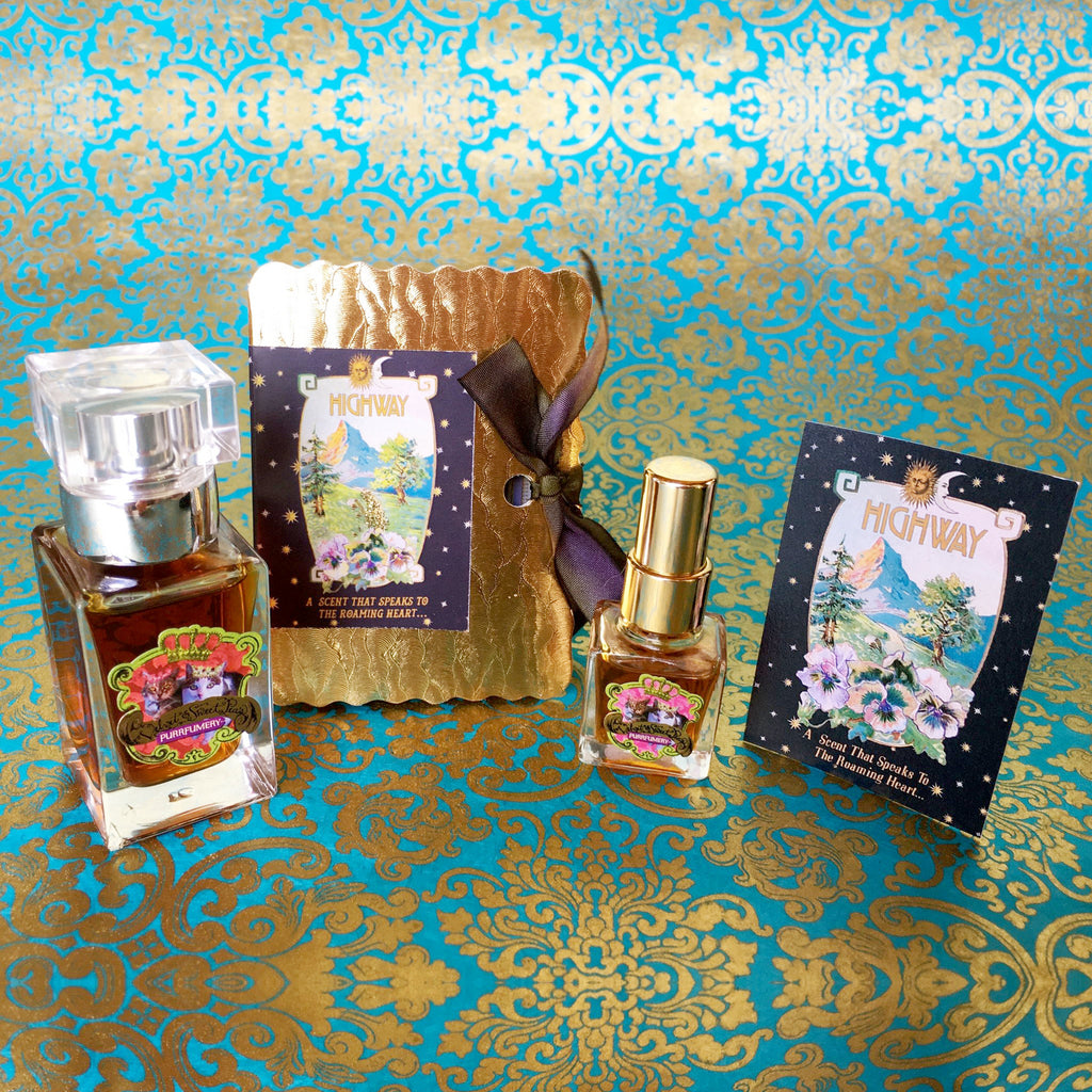 “Highway” is a perfume that speaks to the romantic, restless part of all of us that longs to be swept away, to sit by an open fire in the Scottish highlands drinking fine whisky or making love under the stars on a gently swaying sail boat that’s dropped its anchor somewhere far from prying eyes. It’s learning to tango and rekindling the passion with your partner that’s been hidden away in your everyday life of diapers and dishes. It speaks to faraway lands and far away lifetimes and the promise that if we breathe deeply enough and are willing to risk everything that we think that we are, that we can recreate ourselves to become the very person that we’ve always longed to be.