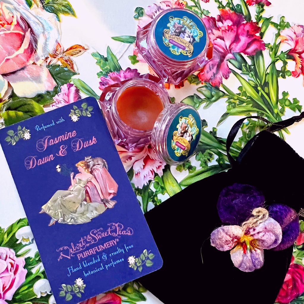 Extrait de parfums and solid perfumes are made in small, hand-crafted batches and include a vintage number.